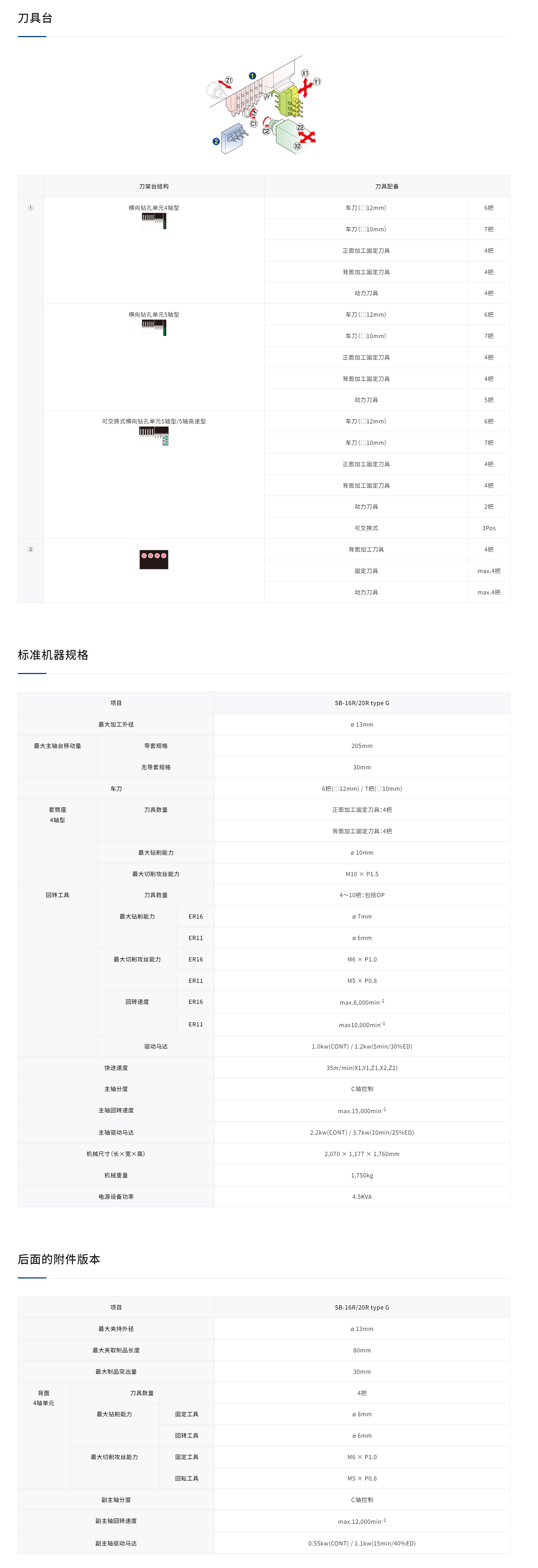 • 配合加工最适合的刀具装备、可有4种刀架的选择。