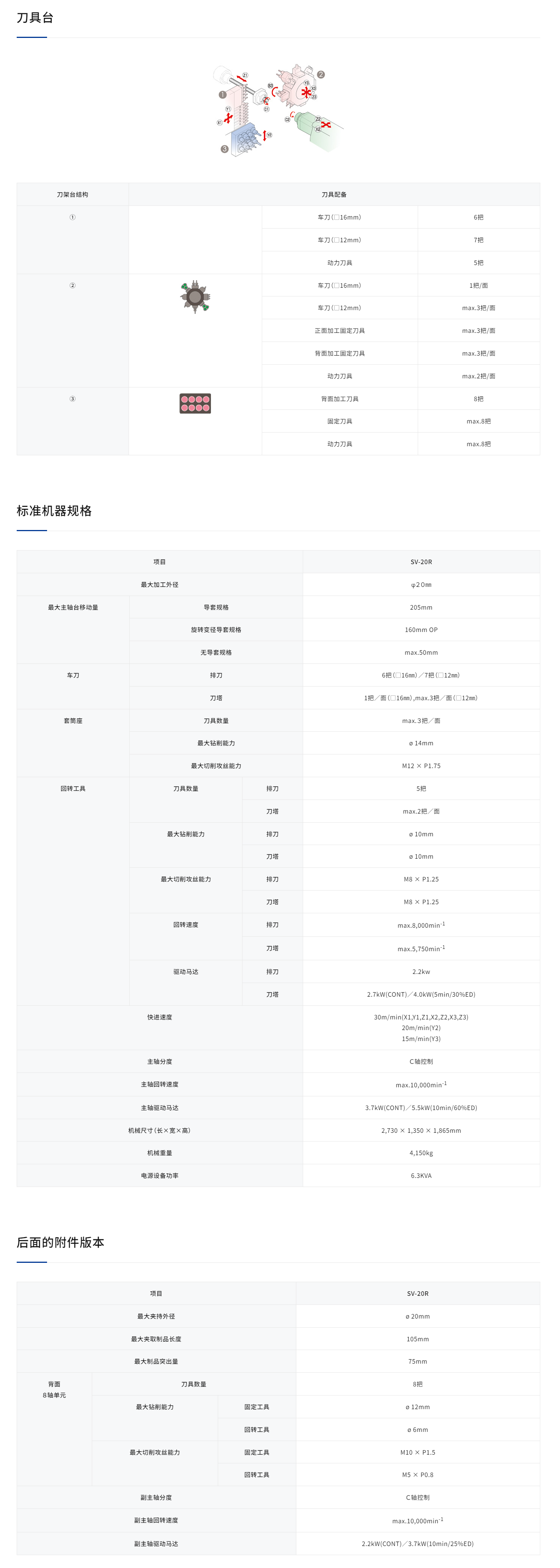• 在刀塔型刀架台上,最多可安装4处对应B轴控制的2轴型旋转刀具单元。